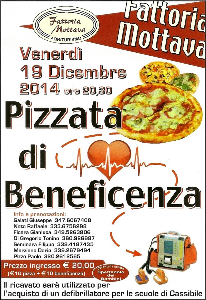 Tutto pronto per la “Prima Pizzata di Beneficenza”. Si tratta di un’idea partita dal cittadino Giuseppe Galati e che ha sposato subito l’interesse di altri cassibilesi: Raffaele Noto, Gianluca Ficara, Tonino Di Gregorio, Filippo Seminara, Dario Marziano e Paolo Pizzo. All’evento posso partecipare tutti i cittadini con un contributo di 20 euro a persona.