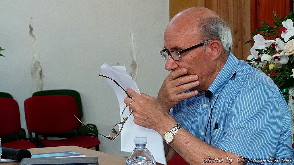 Lo straniero e la Bibbia. Verso una fraternità universale; Crisi educativa. L’Evangelo come pedagogia; L’io ospitale. Saggio sull’accoglienza, sul rapporto io-tu a partire dalla categoria dell’ospitalità; Lo straniero nella Bibbia. Ospitalità e dono; Francesco e l’altissima povertà. Economia del dono e della giustizia; La passione di Gesù. Nonviolenza e perdono. Dio e i suoi volti. Per una nuova teologia biblica. Ed è proprio quest’ultimo che Carmine Di Sante ha presentato per la prima volta a Cassibile. All’interno della chiesa di San Giuseppe colma si è svolto l’incontro. Al centro dell’altare Padre Salvatore Arnone e Carmine Di Sante hanno parlato e discusso di Dio, dei suoi volti e parlato ampiamente dell’Ebraismo, com’è veramente, come lo interpretiamo noi e come dovremmo vederlo realmente.
